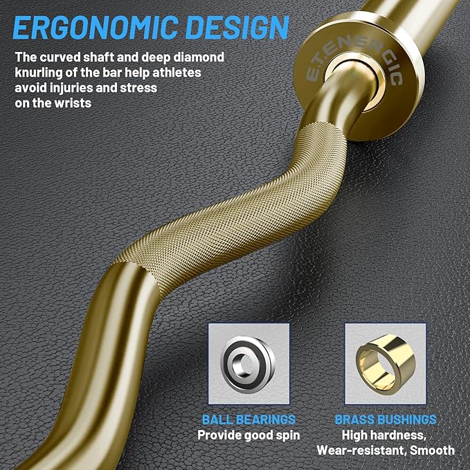 - Curved Shaft: The curved shaf, deep diamond knurling and ergonomic design of the bar helps athletes avoid injuries and stress on the wrists