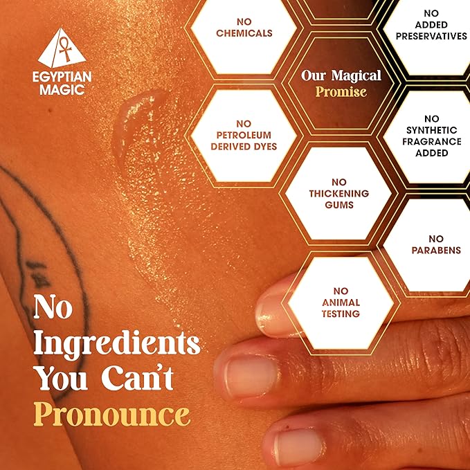- MADE WITH PURE INGREDIENTS: Egyptian Magic Skin Cream is a premium blend of five ingredients - honey, royal jelly, beeswax, olive oil, and bee propolis. Rich in antioxidants and renowned for their nourishing and healing benefits.