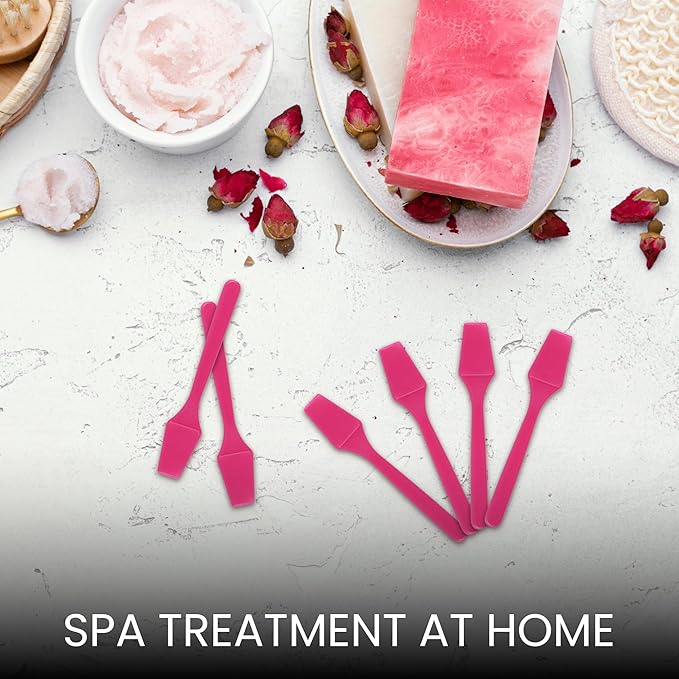PANA 100pcs Brand Cosmetic Make Up Disposable Plastic 2.5" Spatulas Skin Care Facial Cream Mask Spatula (100 Pieces in a Container) (PINK)