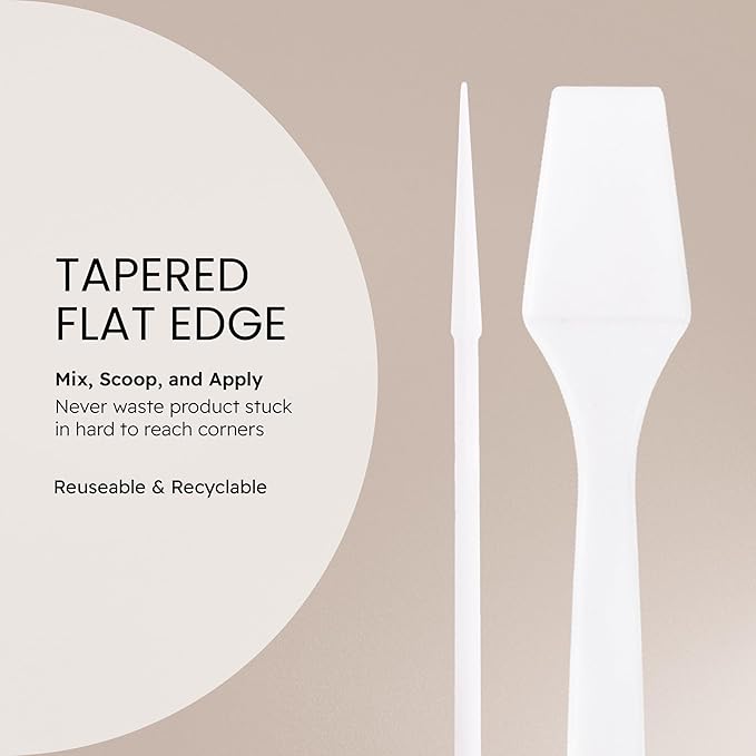 - Hygienically test, mix or apply make-up or skin care products with this disposable plastic white spatula