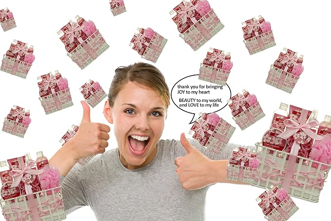 Spa Bath and Body - Spa Gift Baskets for Women & Girls, Cherry Fragrance, Spa Birthday Gift Includes Loofah Sponge, Bath Salt, Body Lotion, Soap Rose, Body Mist, Shower Gel Bubble Bath