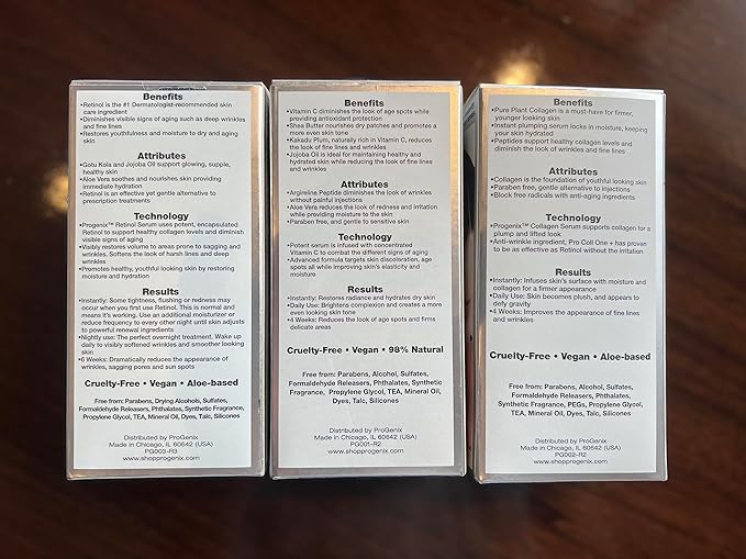 - Anti-aging skin care kit features Collagen Plumping Serum to help plump fine lines and firm uneven skin tone, Retinol Serum for wrinkles and fine lines, and Vitamin C Brightening serum for age spots, dark spots, and hyperpigmentation. You’ll see results within 1 month!