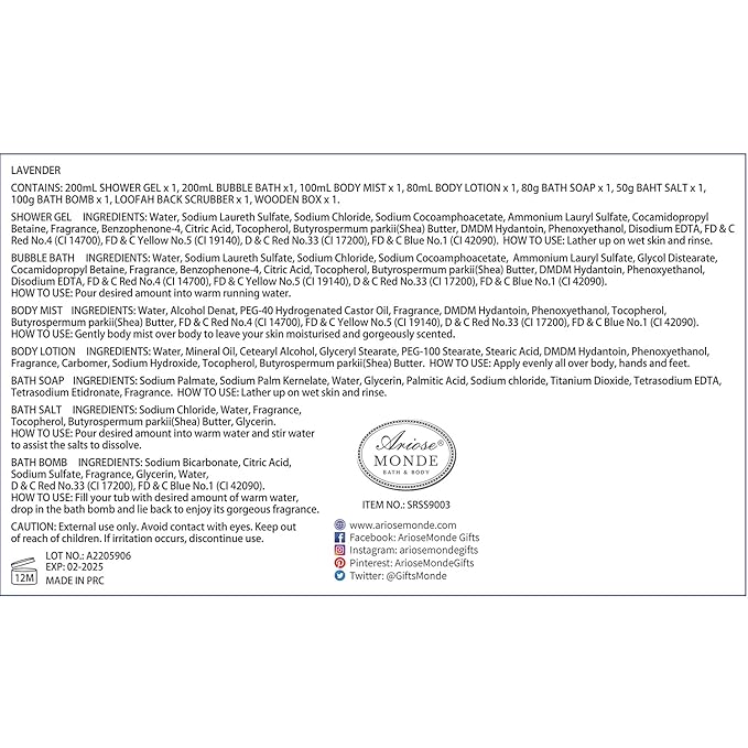 - CAREFULLY SELECTED INGREDIENTS: Our spa gift set is formulated with a variety of natural ingredients, extremely moisturizing and soothing.All of our market picks are elaborately selected and tested by the Research and Development team