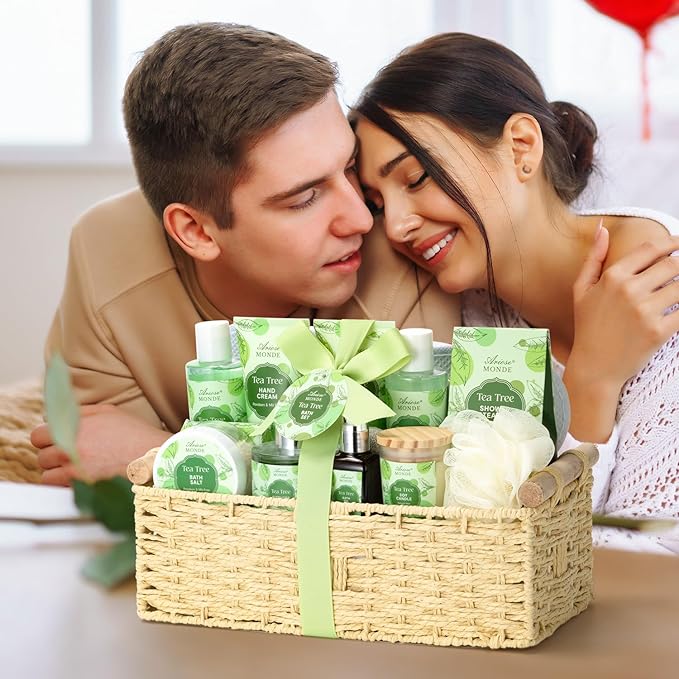 - ELEGANTLY PACKAGED: The spa treasures are meticulously arranged in an elegant woven basket, this spa gift set is not just a treat for yourself, but also a perfect gift for those who appreciate the finer things in life. Embrace opulence and elevate self-care to an art form with our Luxurious Tea Tree Spa Gift Basket