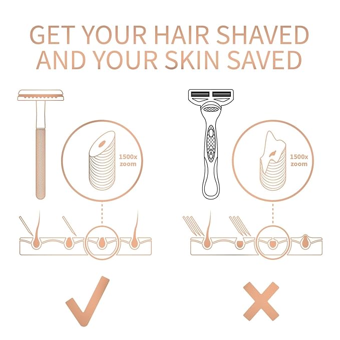 - THE PERFECT SHAVE: Make skin irritations and ingrown hair a problem of the past. With the safety razor for women, you will achieve the closest shave effortlessly.