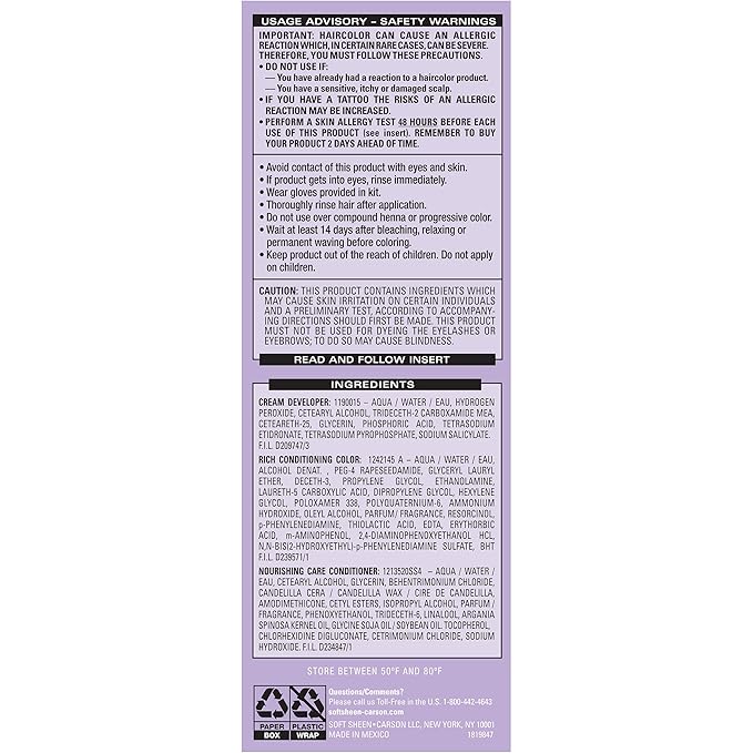 - Nourishing care - Designed to help protect relaxed and Natural hair while coloring, this conditioner is infused with Argan Oil and Vitamin e-to provide intense nourishment from root to tip.