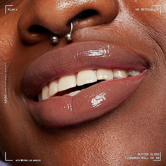 NYX PROFESSIONAL MAKEUP Butter Gloss Brown Sugar, Non-Sticky Lip Gloss - Cinnamon Roll (Grey Brown)