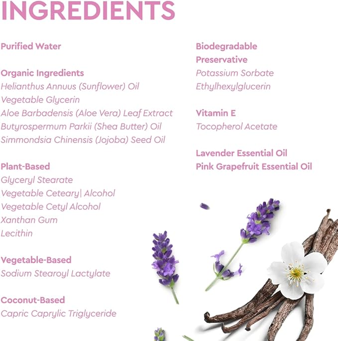 - Only Pure Ingredients: No cocamidopropyl betaine, sulfates (SLS, SLES, SCS), salicylates, parabens, petroleum-based ingredients, animal by-products (cruelty-free), perfumes, or dyes