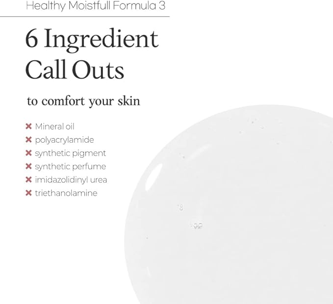- FREE OF Mineral oil, Polyacrylamide, Imidazolidinyl urea, Triethanolamine, Tar color and Silicone oil