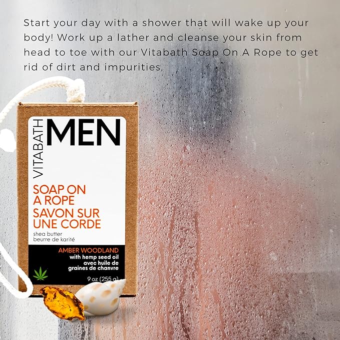 Vitabath Men's Amber Woodland Soap on a Rope Moisturizing Natural Hemp Oil & Shea Bar - Hydrating Whole Body Cleanser for Men or Women - 9 oz