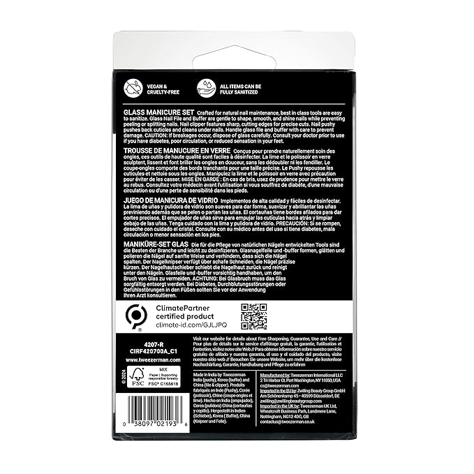 Tweezerman Glass Manicure Set Includes Nail Clipper, Cuticle Pusher, Glass Nail File, and Glass Nail Buffer
