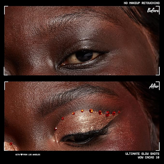 - Ultimate Shimmer and Glow: Brightening liquid eye color in one shot. Our new innovative liquid eyeshadow is a lightweight, buildable make up formula with no flaking, no fallout, no glitter only long-lasting shimmer