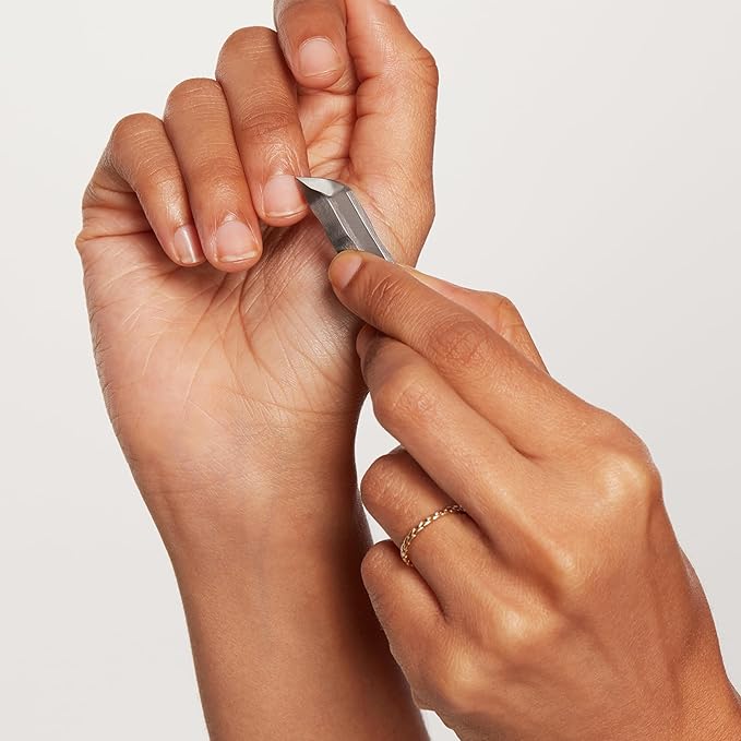 - How to Use: Start by trimming nails into desired shape with the nail clipper. Starting at the corners and clipping toward the center. Apply moisturizer or cuticle cream onto clean nails to gently soften cuticles. Use flat end of Pushy to push back cuticles and cleaner end to remove debris under and around nails. Trim excess cuticles and hangnails with the Mini Cuticle Nipper, never cut live skin. Finish by gently shaping and smoothing nails with the glass nail file.