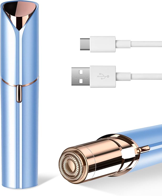- PRECISION & USB-Rechargeable: Built-in soft led light and sharp stainless steel blades which can effective remove unwanted hair from face and eyebrows to create perfect shape even in dim condition. This electric eyebrow removal is powered by USB cable for long time continue use.