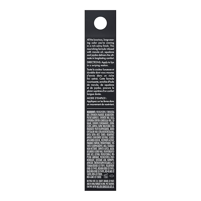 - HYDRATING & LONG-LASTING FORMULA: e.l.f. Cosmetics’ O Face Satin Lipstick's creamy, long-lasting formula is infused with nourishing & hydrating squalane and jojoba esters for a super-comfortable, next-to-nothing feel.