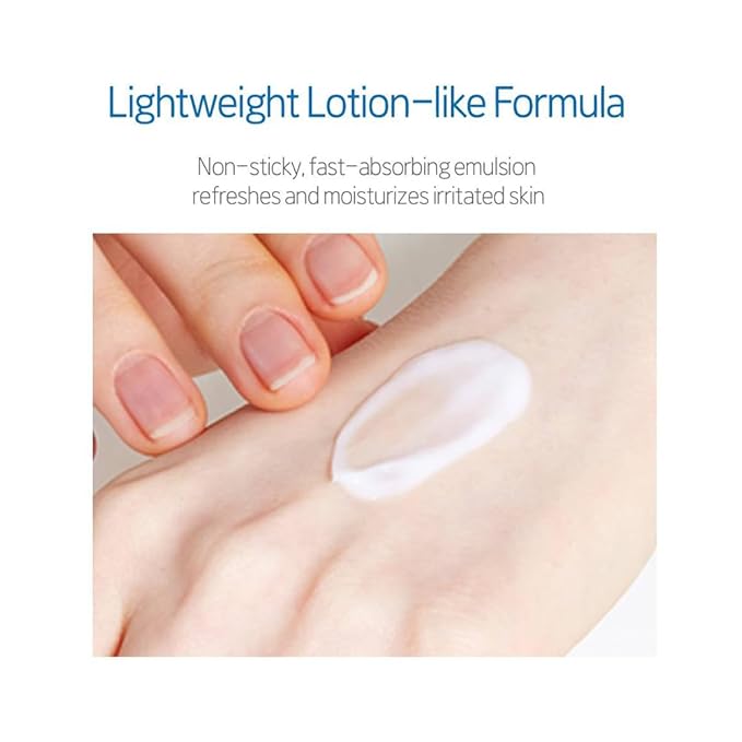 - Lightweight Lotion-like Formula: Non-sticky, fast-absorbing emulsion refreshes and moisturizes irritated skin
