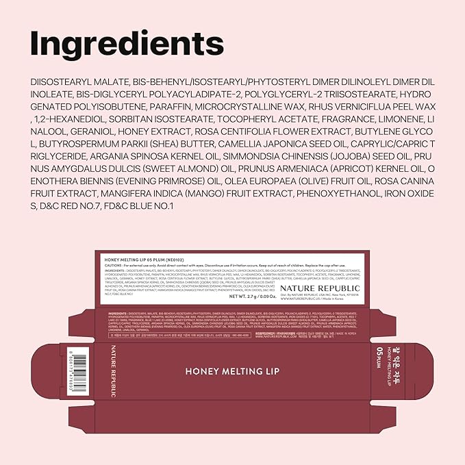 Nature Republic HONEY MELTING LIP (05 PLUM) SOFT LIP STICK, Hydrating Gloss, Moisturizing balms, Sheer tint, Shine & Glowy Finish, korean make up