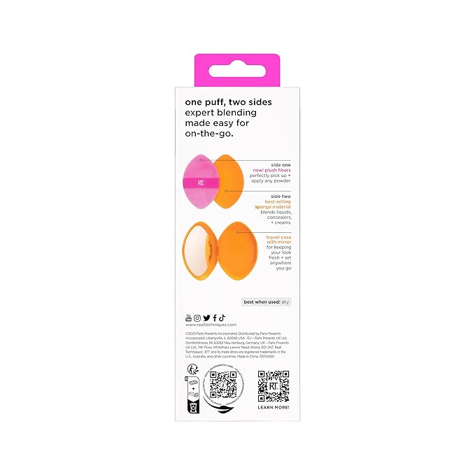 - Real Techniques Miracle 2-In-1 Powder Puff and a travel case with a mirror to help you achieve a soft, set finish to apply and touch up makeup on-the-go