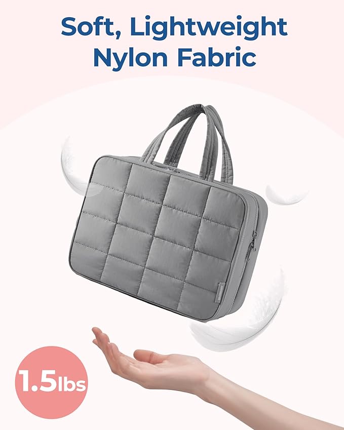 - ๐๐ฎ๐๐๐ฒ ๐๐๐ญ๐๐ซ๐ข๐๐ฅ๐ฌ: Hanging Toiletry Bag is made of puffy fabric and weighs only 1.1lbs-1.5 lbs. Super soft, lightweight nylon fabric provides all-day carry comfort
