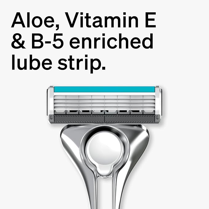 - PRIORITIZING PROTECTION – This shaving razor protects skin even after 2400 strokes, and has a lubricating strip, enriched with Aloe, Vitamin E, and Vitamin B5, for a smooth glide and added protection.