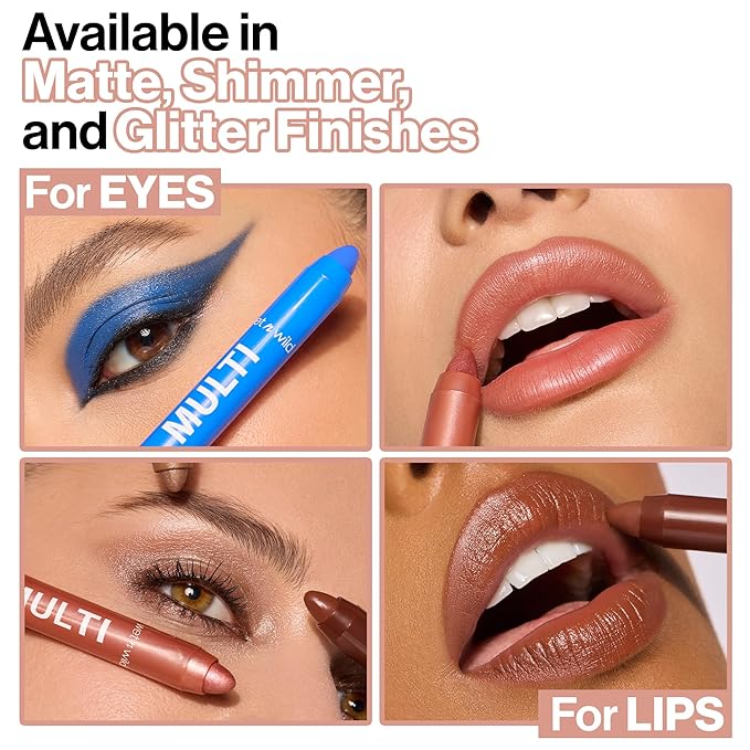 - Variety of Finishes: This collection of multisticks is available in buttery matte, radiant shimmer, and dazzling glitter finishes.