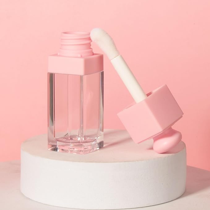 COSIDEA 18PCS Empty 8ML Square clear Lip Gloss Tube Silver big doe foot wand lipgloss tubes for Lip oil tint bottles container… (Pink)