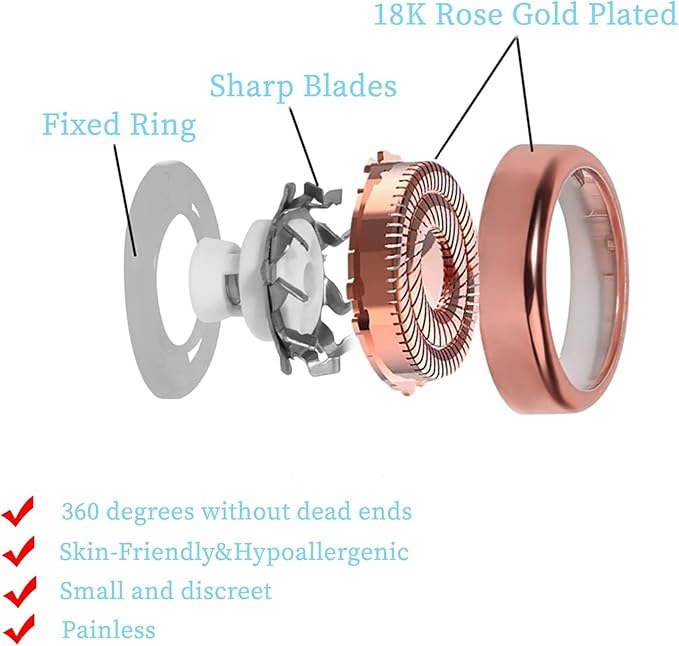 - 【ComfortCut】18K gold-plated surface, a built-in stainless steel blade set, and the bottom interface is perfect for finishing touch flawless facial removal. It can easily remove facial hair without causing pain, facial infections and other problems.