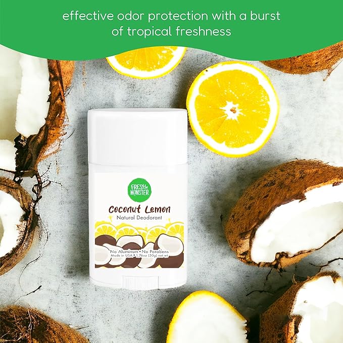 FRESH MONSTER Deodorant for Kids & Teens, Coconut-Lemon Scent, No Aluminum, No Parabens, Vegan, 24-Hour Protection, Coconut Lemon, 1.76 oz