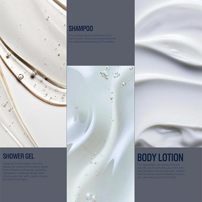 - Moisturize in Style: Our set includes a body lotion that deeply hydrates while wrapping you in a rich leather fragrance, making your skin soft and smooth