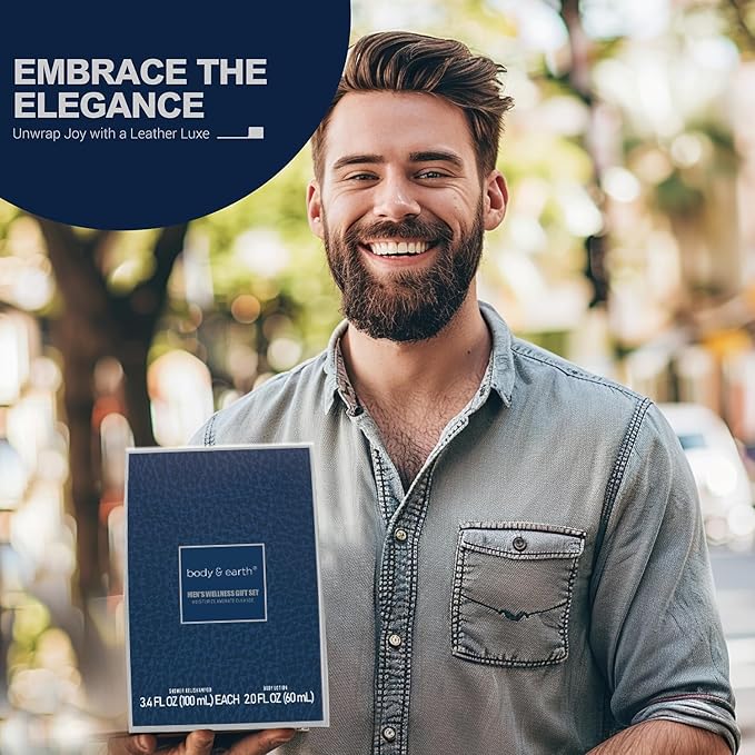 - Leather Fragrance: Indulge in the Leather Men's Bath Gift Set. Deep leather notes in shower gel, shampoo, and body lotion create a timeless, luxurious aroma