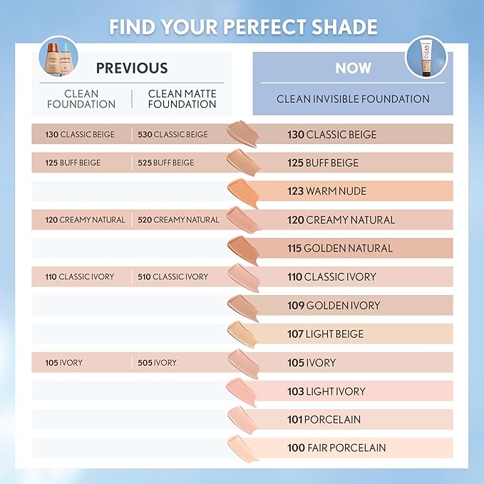 COVERGIRL Clean Invisible Foundation Makeup, Dewy & Glowy Natural Finish, Buildable Coverage, Skin-Like Smooth Look, Vegan, Porcelain, 1oz