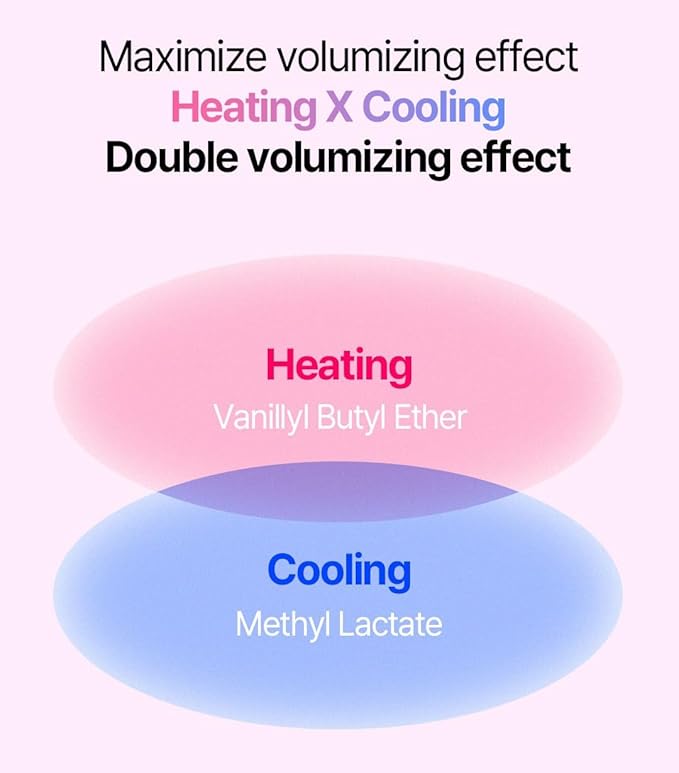 - PLUMPING EFFECT: the combination of Vanillyl Butyl Ether, which delivers warmth to the lips, and Menthyl Lactate, which provides a refreshing cooling sensation, promotes blood circulation in the lips, resulting in a fuller volume without any gaps.