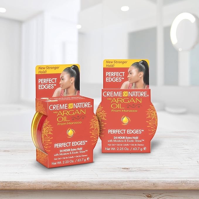 Creme of Nature with Argan Oil From Morocco Perfect Edges Hair Gel, 24 Hour Hold with Moisture and Exotic Shine, Black, 2.25 Oz (Pack of 2)