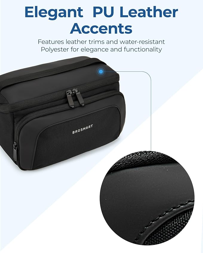 - ๐๐ฅ๐๐ ๐๐ง๐ญ ๐๐ ๐๐๐๐ญ๐ก๐๐ซ ๐๐๐๐๐ง๐ญ๐ฌ๏ผMens Toiletry bag features PU leather trims and water-resistant polyester for elegance and functionality.