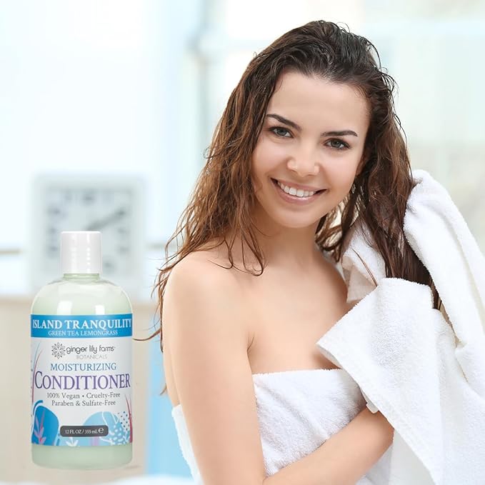 Ginger Lily Farms Botanicals Moisturizing Conditioner for Dry Hair, Island Tranquility, 100% Vegan & Cruelty-Free, Green Tea Lemongrass Scent, 12 Fl Oz (Pack of 6)