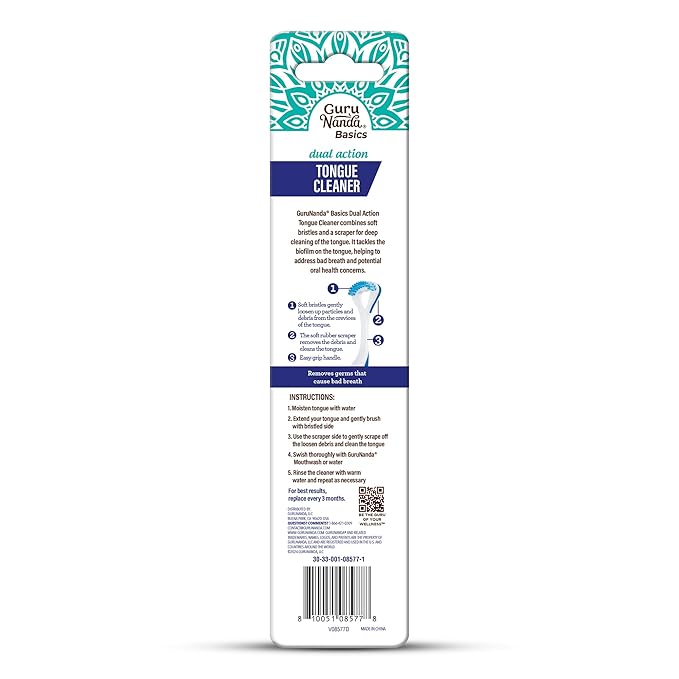 - HOW TO USE: Gently brush your moistened tongue with the bristle side. Then, use the scraper side to remove loosened debris. For long-lasting fresh breath, use GuruNanda's Oral Rinse after scraping & replacing your scraper every 3 months