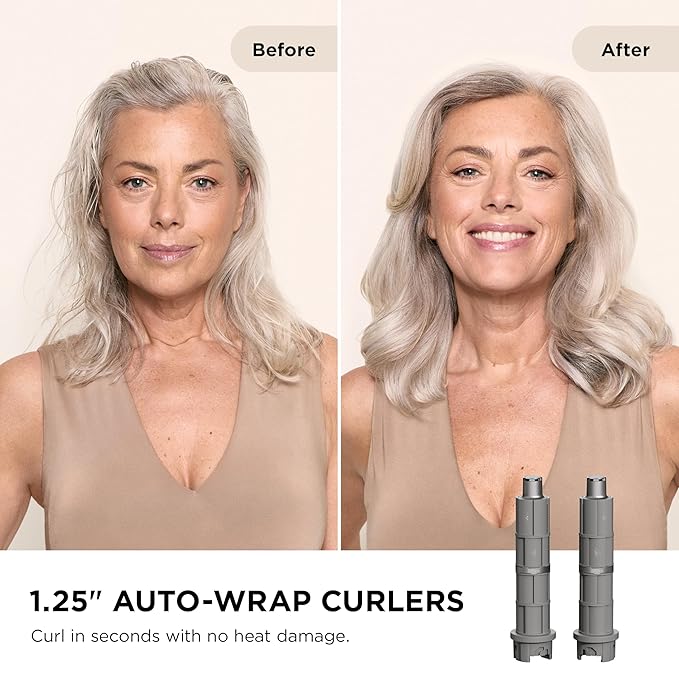 Shark FlexFusion Hair Dryer with Fusion Hair Brush, Diffuser, Ceramic Air Styler with Auto-Wrap Hair Curlers, Ceramic Plates, Metallic Mist HD642
