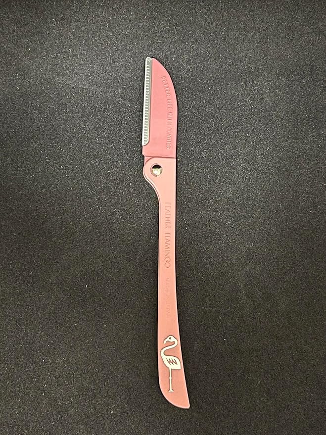 - Feather Flamingo facial touch up razor is an essential tool for grooming eyebrows and dermaplaning face. It is designed to remove fine hairs and peach fuzz for a smoother and more polished look.