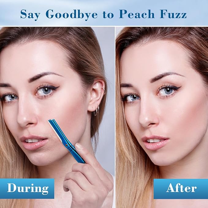 Dermaplane Razor for Women Face with 6 Refill Blades, Dermaplaning Tool Face Razors for Removes Facial Hair, Peach Fuzz, Reusable Metal Handle Eyebrow Razor (Blue)