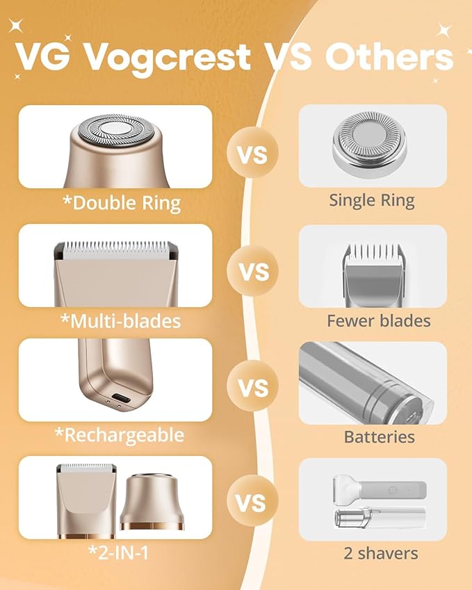 Electric Bikini Trimmer: 2 in1 Body Facial Hair Remover - Painless Pubic Hair Shaver (Rose Gold)