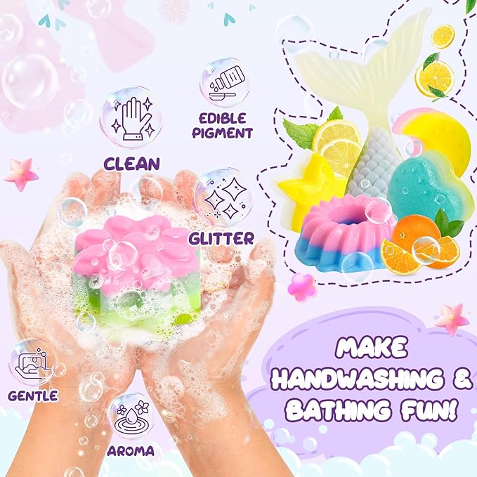 - DIY FUN MAGICAL SOAP: Inspire kids’ imagination with fun soap making! Create colorful, shaped soaps while exploring creativity and learning a new craft. Perfect for hands-on fun and family bonding time. Melt and pour soap base with the coloring, fragrance, and glitter and pour into the soap molds