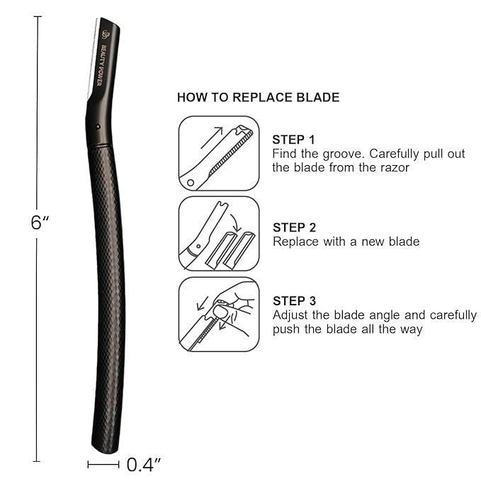 - ✅ 6 REPLACEABLE BLADES FOR LONG-LASTING USE – This face razor comes with six ultra-sharp, stainless steel blades, ensuring precision and durability. Swap blades effortlessly for a fresh and hygienic shave every time.