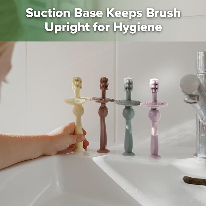 - INSTILL EARLY ORAL HYGIENE ROUTINES: The Haakaa 360° baby toothbrush with suction base is the perfect first toothbrush to set up good brushing habits from an early age. Suitable to use even before baby’s first teeth emerge.