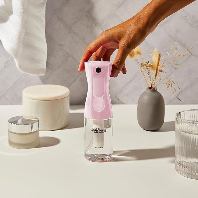 TANGLE TEEZER Travel-Size Fine Mist Continuous Spray Bottle, Reusable and Refillable, for Hair Detangling and Styling, 6.1 oz, Millennial Pink