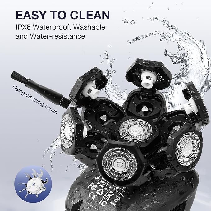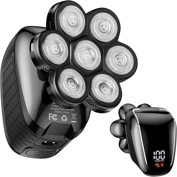 - 7D Floating Shaving Head: The upgraded version of the 7D floating shaving system is ergonomically designed.The design of 7 cutter heads increases the shaving area and saves shaving time. Our shaver is designed with a non-slip handle for easy gripping, a great choice for your shaved heads. Please regularly clean the hair in the shaver head