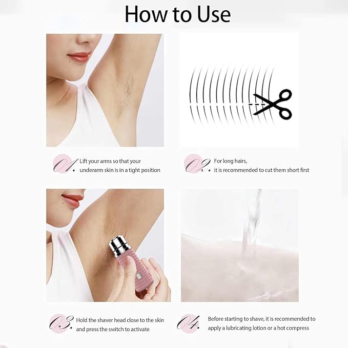 - Instant and Painless: The mini electric razor is equipped with a dual-ring blade and a tiny but powerful motor, ensuring immediate and smooth hair removal without pain, especially for women