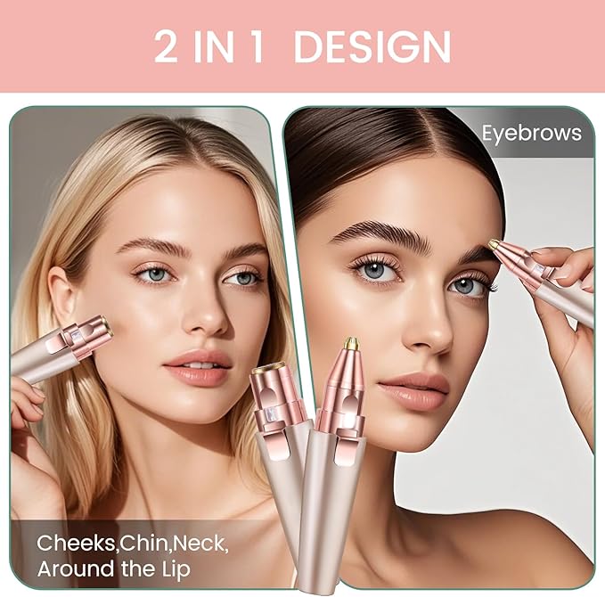 - GENTLE & PAINLESS: The 2-1 women's hair remover is suitable for daily use to keep up with hair regrowth and leave it smooth, specially designed for use on eyebrows, upper and lower lip, cheeks, chin, and neck. Works on peach fuzz or fine hair. Go slow with circular movements and it will do the job