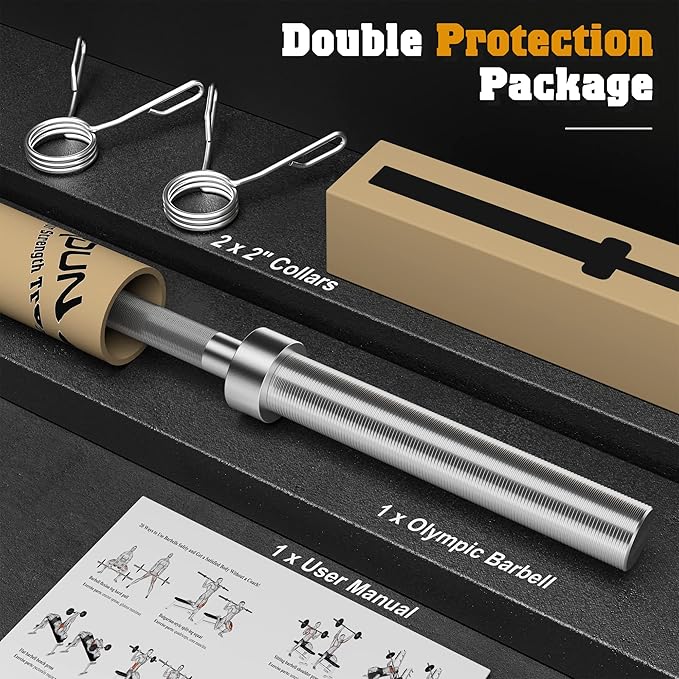 - 【Buy with Confidence】 You will receive 1 barbell, 2 spring Clip Collars and an instruction manual with exercise guide, which will be packed in a double box. You never need to worry about receiving a scratched product.