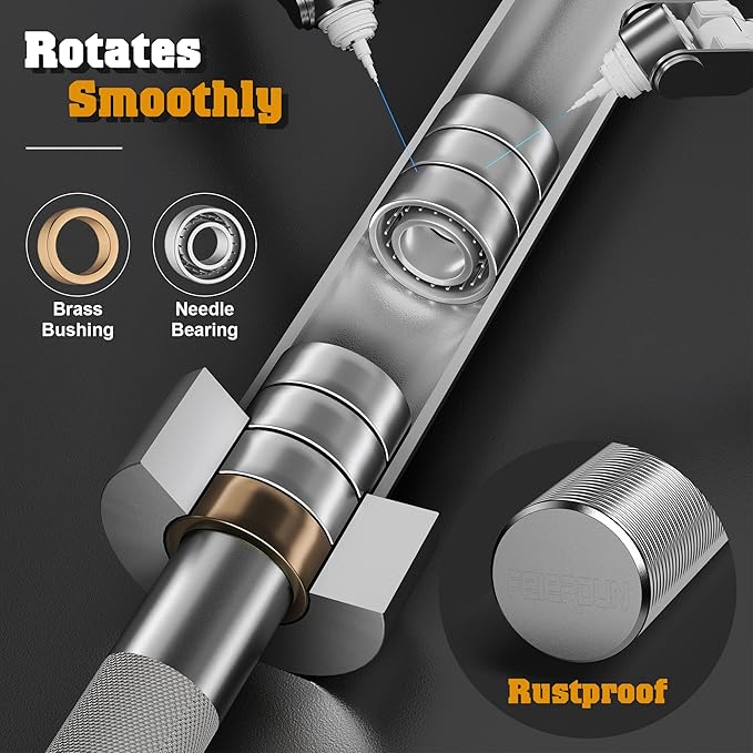 - 【Extremely Strong Security】Multiple knurling positions and lengths for your convenience and safety. Rotating sleeves with 15 needle bearings and brass bushings for a smooth spin & less pressure on the wrists & forearms