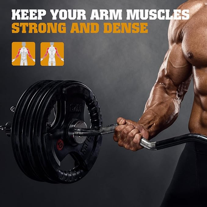 - 【Enhanced Safety】Our curl barbell is user friendly. The right grip angle and rotatable bearings at the sleeve can put you in a very comfortable position.